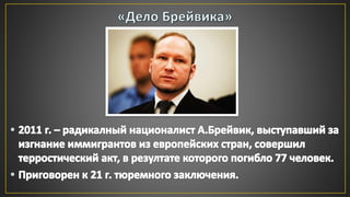 Норвегия является унитарным государством с конституционной монархией и парламентской демократией, где король Харальд V и премьер-министр Эрна Сульберг управляют страной. Культура страны основана на принципах эгалитаризма и толерантности, например, она первой разрешила однополые браки в Скандинавии. Норвегия признана одной из самых благополучных стран с низким уровнем преступности и высоким уровнем жизни.