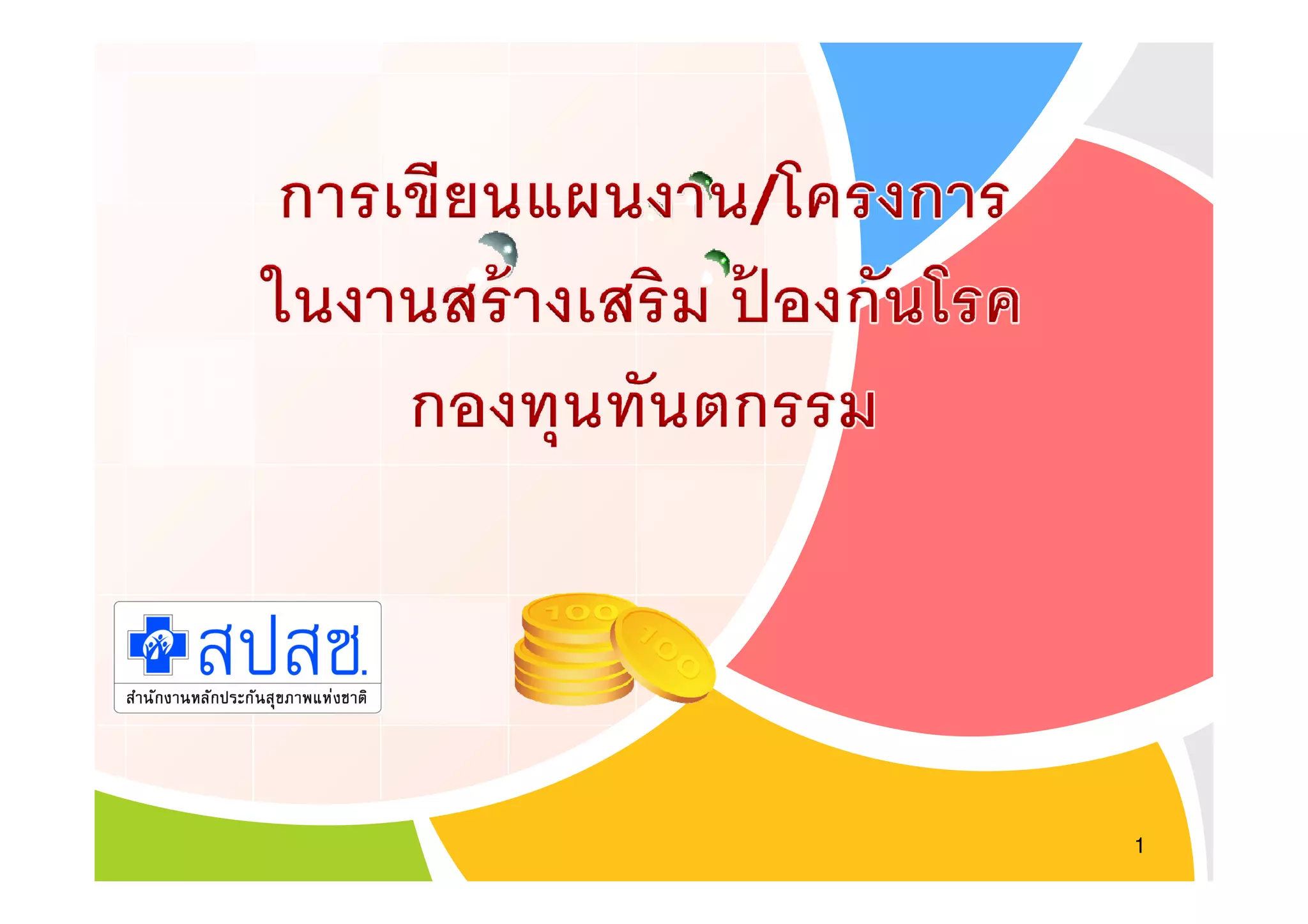 การเขียนแผนงาน/โครงการ ในงานสร้างเสริม ป้องกันโรค กองทุนทันตกรรม โดย ธงชัย สิทธิยุโณ สปสช.