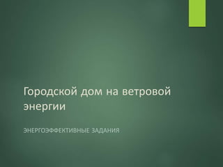 Проект городского дома на ветровой энергии в Амстердаме разработан архитектурным бюро Zwarthout и является энергетически самодостаточным, получившим две сертификации по стандарту пассивного дома. В здании предусмотрены решения для энергогенерации, включая ветрогенератор, солнечные батареи и коллекторы. Документ также содержит фотографии проекта и ссылки на источники.
