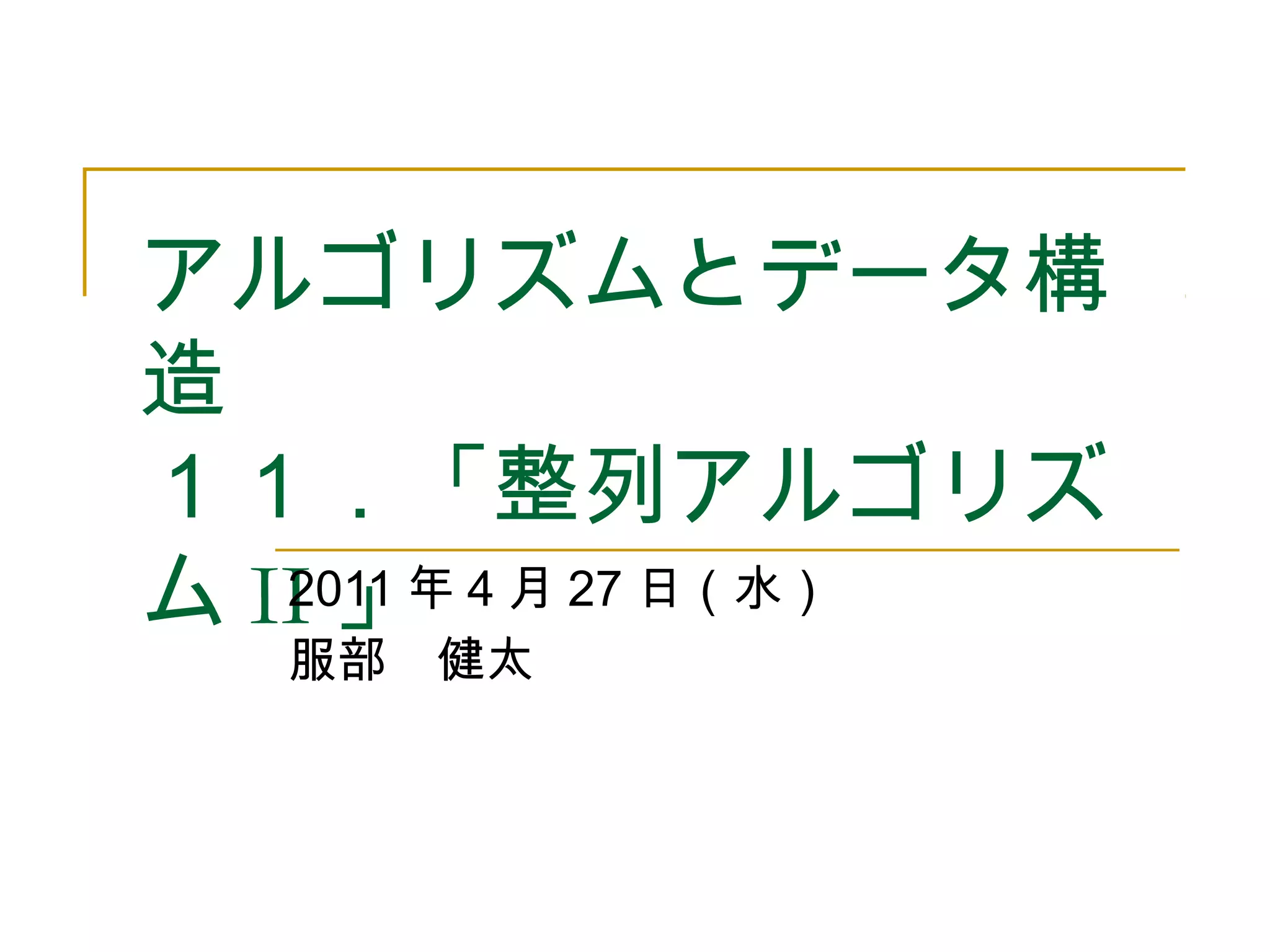 3. 2011/4/27 アルゴリズムとデータ構造 11 3