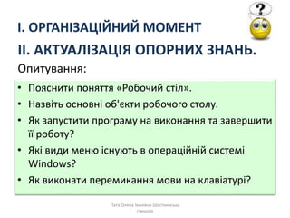 • Пояснити поняття «Робочий стіл».