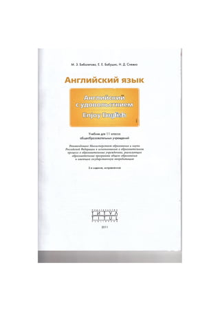 This document appears to be the cover and contents page of an English language textbook for 11th grade students in Russia. It provides: