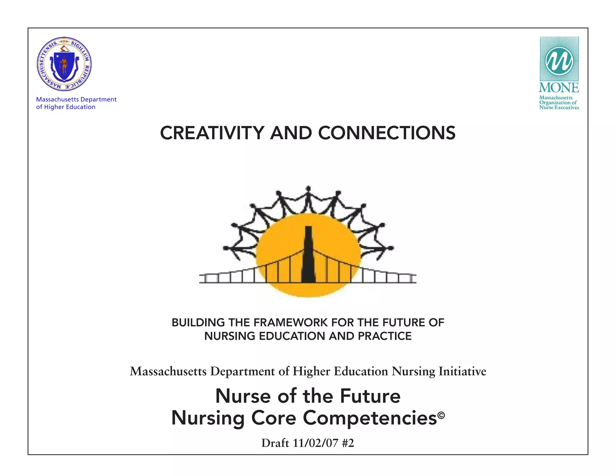 The document outlines the development of core nursing competencies in Massachusetts to establish a seamless progression through all levels of nursing education and transition nurses into practice settings. A working group composed of nursing educators and leaders developed competencies based on a review of other state and national standards. The competencies are intended to serve as a framework for a competency-based nursing education model. Feedback is being sought from nursing faculty and practitioners to refine the competencies.
