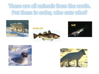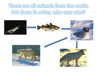 The document provides instructions for students to work in groups to create a storyboard showing the impacts of climate change on an ecosystem through a series of pictures with captions. It explains that students should read an information sheet, draw or work together to produce the storyboard pictures showing climate change effects, and include explanatory captions for each picture to then explain to the class. An example impact provided is that polar bears may struggle to hunt seals as climate change causes sea ice to form later and melt earlier each year or retreat further from shore.