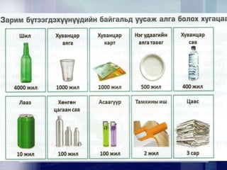 экологийн бохирдлоос сэргийлэх үүднээс