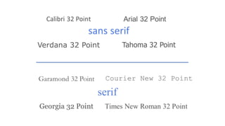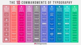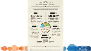 The document provides an overview of typography and data visualization design. It discusses goals of understanding fundamentals of typography and graphics and exploring the use of font and its effect on emotion. It covers typography terminology like point size, leading, letter spacing. It discusses how typography is used in data visualization and why it is important. It also talks about how fonts can connote different emotions and personalities and provides examples of research studies on the influence of fonts. Lastly, it provides tips for effectively combining fonts in designs.