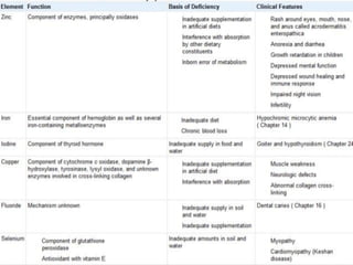 The document discusses the roles, sources, and deficiencies of various vitamins, categorizing them into fat-soluble and water-soluble types. It explains the essential biochemical functions of vitamins, their metabolic activities, dietary sources, and potential deficiencies that can lead to specific diseases. Additionally, the document highlights the importance of vitamins and minerals in promoting health and preventing various conditions.