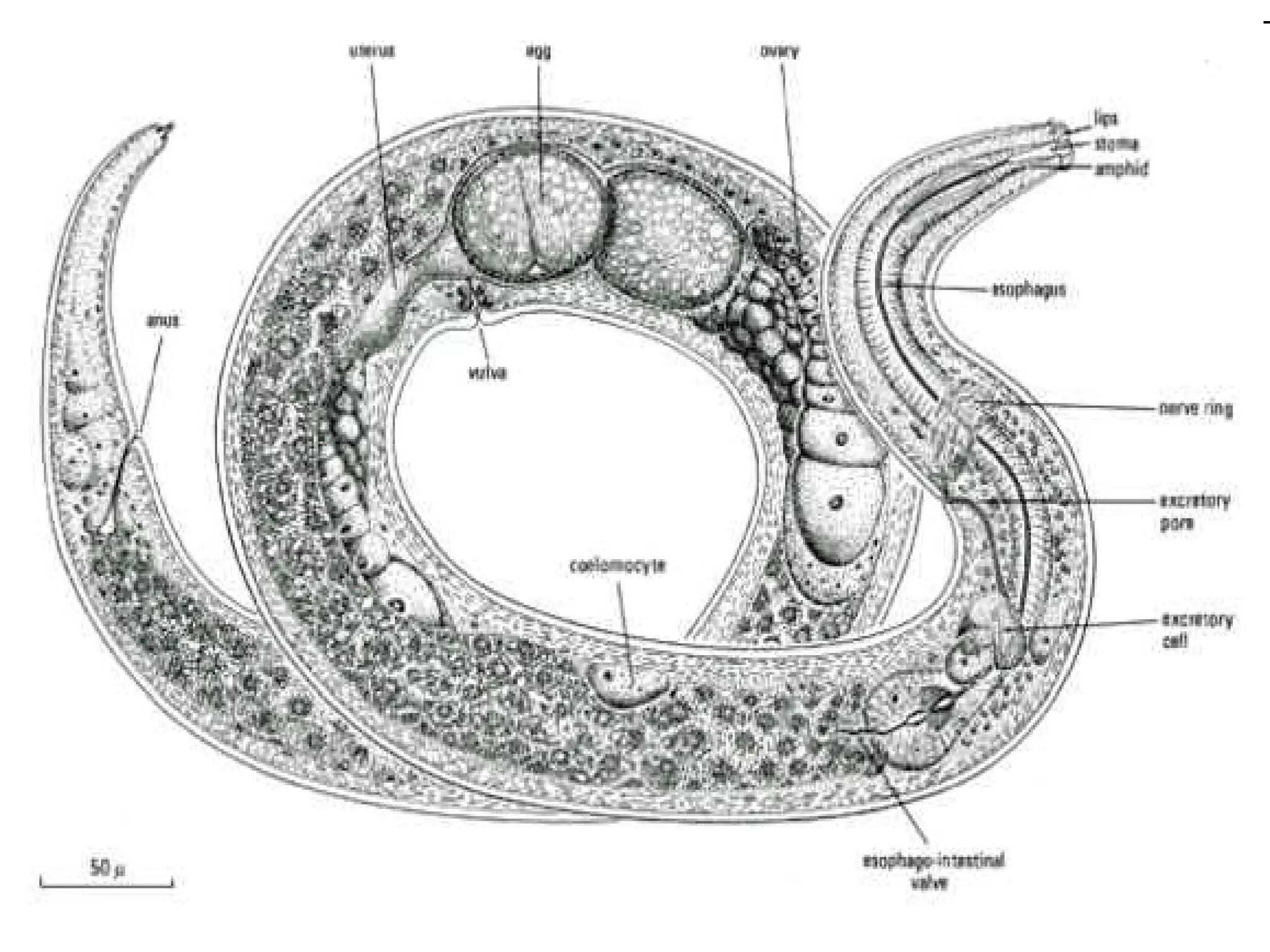 Phylum Nematoda are roundworms or nematodes with hydrostatic skeletons. Some are parasites in tissues.
