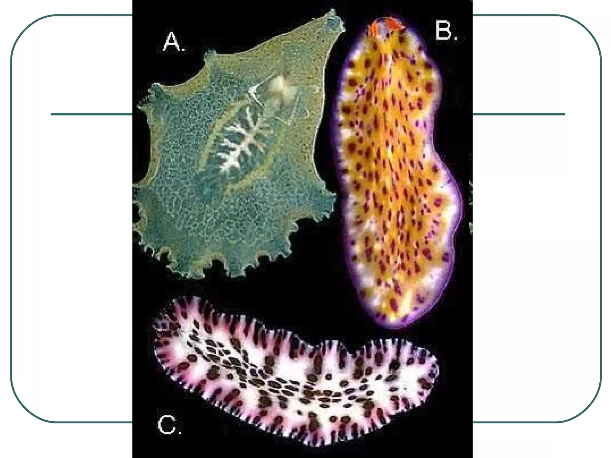 Phylum Platyhelminthes includes flatworms which have bilateral symmetry and specialized tissues. They have a simple nervous system and digestive system. Some are parasites.