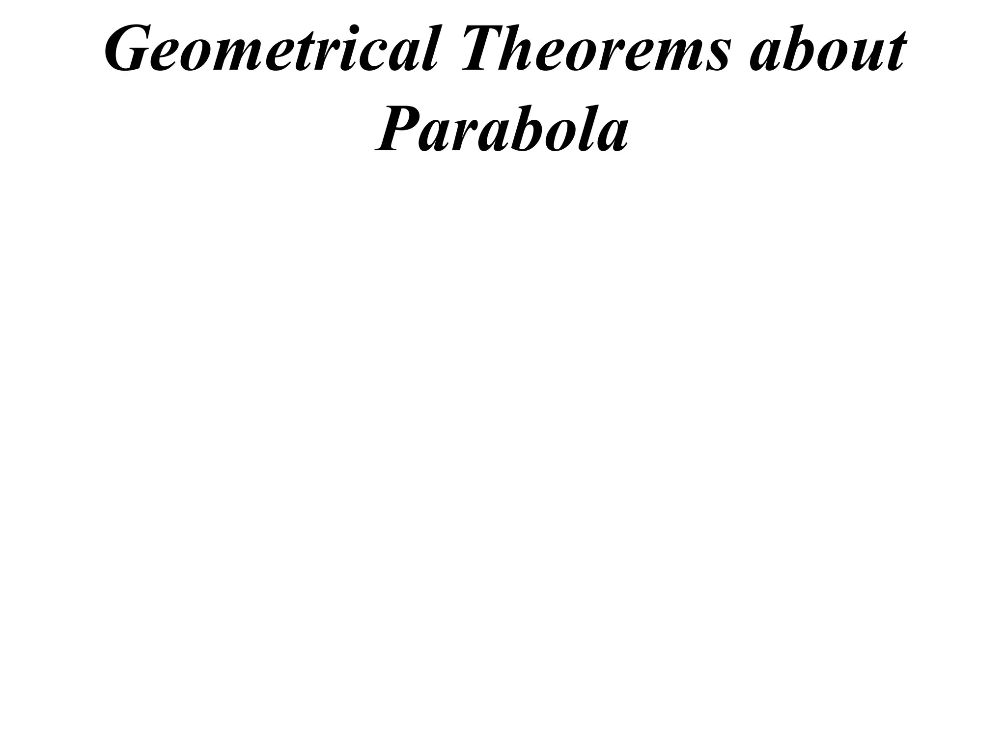 The document discusses geometrical theorems about parabolas, including two main topics: