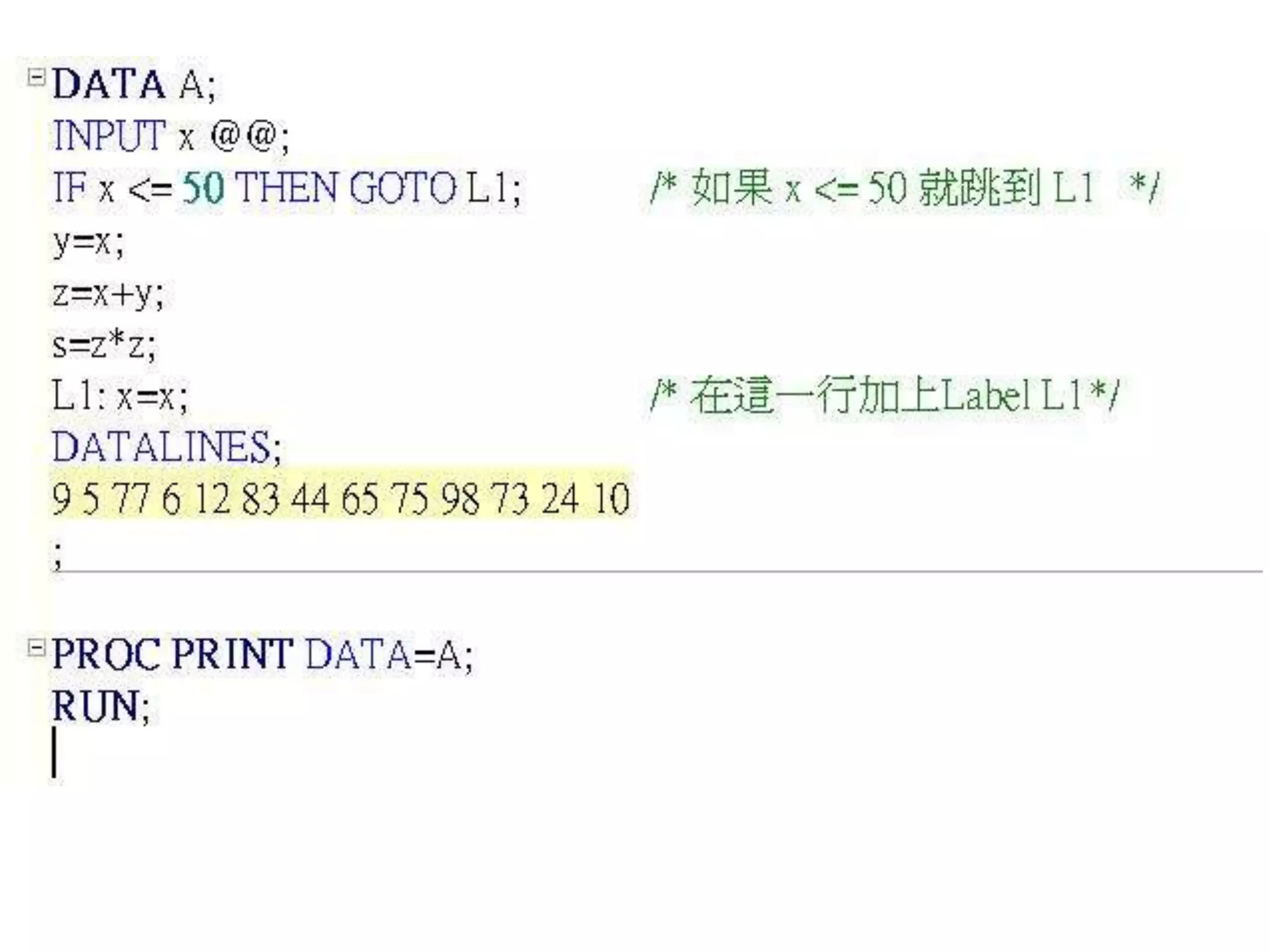 TITLE '使用LIST選項指令';
