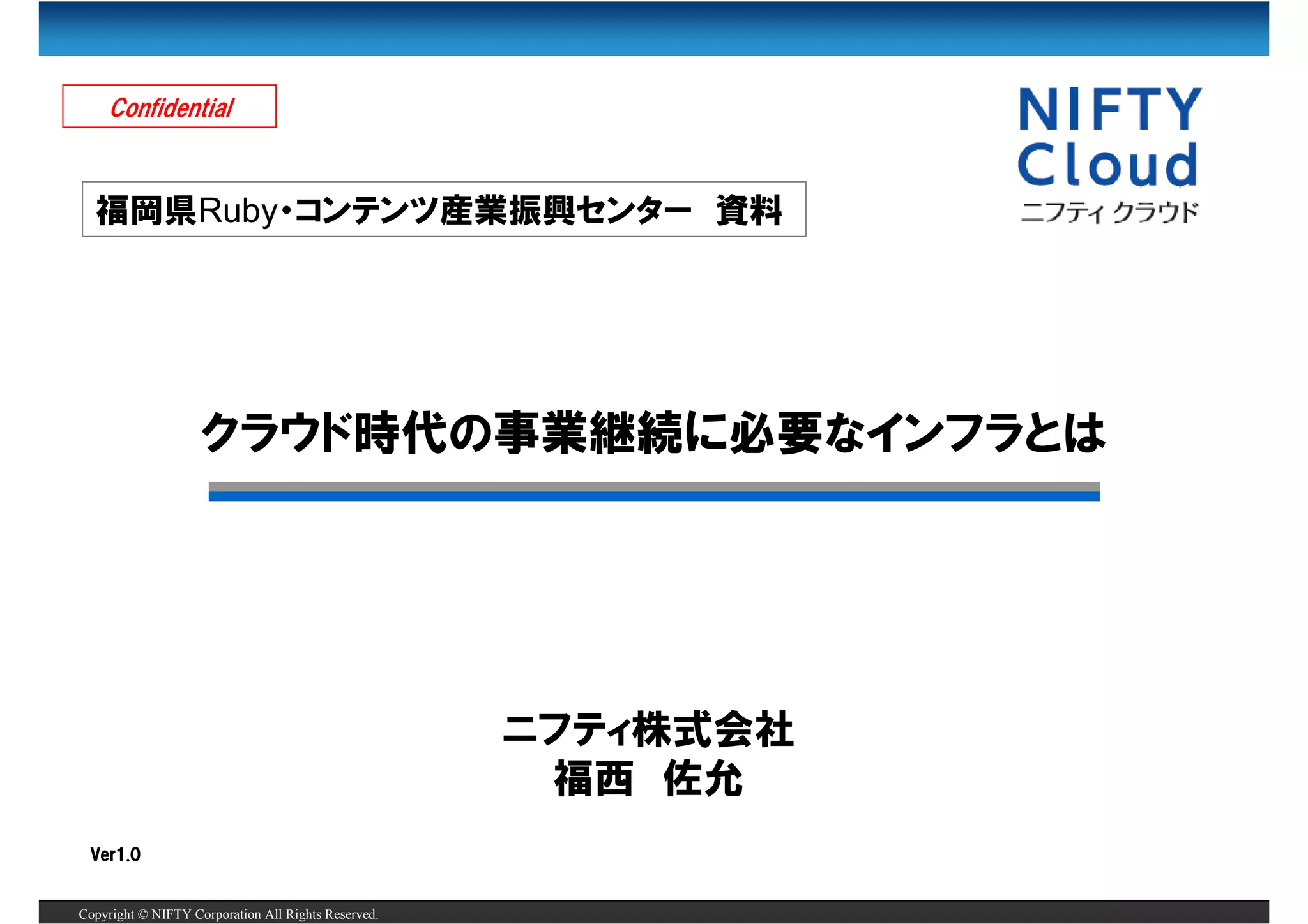 110421講演資料「クラウド時代の事業継続に必要なインフラとは」(福岡ruby・コンテンツ産業振興センター)