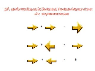 1.2 แรงลัพธ์ คือ แรงรวมซึ่งเป็นผลรวมของแรงย่อย ซึ่ง