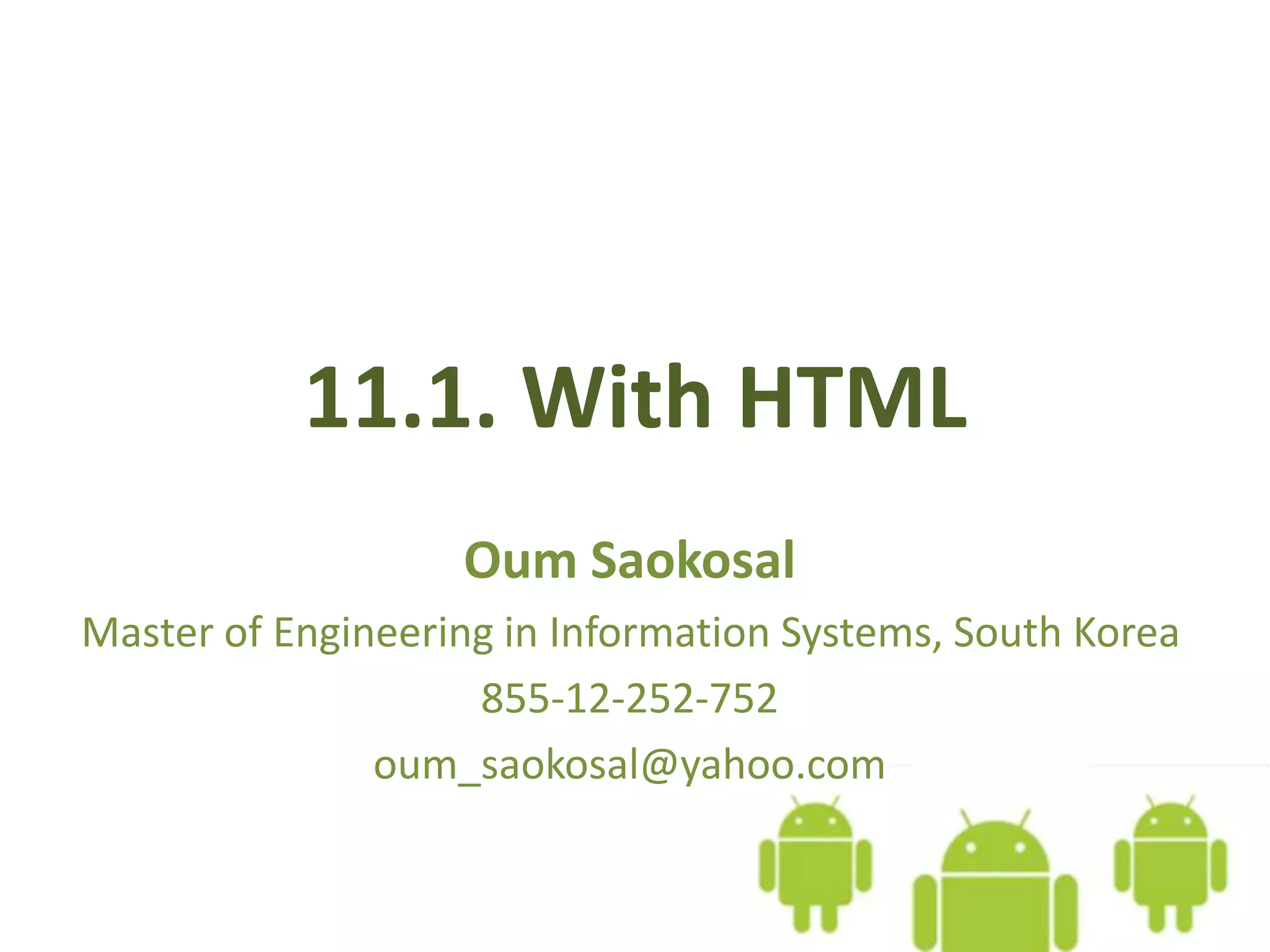 This document discusses how to create hyperlinks from text, images, and other views in an Android app using HTML and intents. It provides code examples for creating a simple text link, custom text link, and link on an image. It also shows how to generate and display an HTML page with a link in a WebView widget.