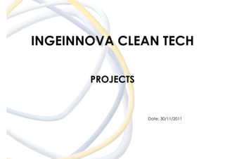 This document provides summaries of various clean technology projects being developed by Ingeinnova Clean Tech, including: