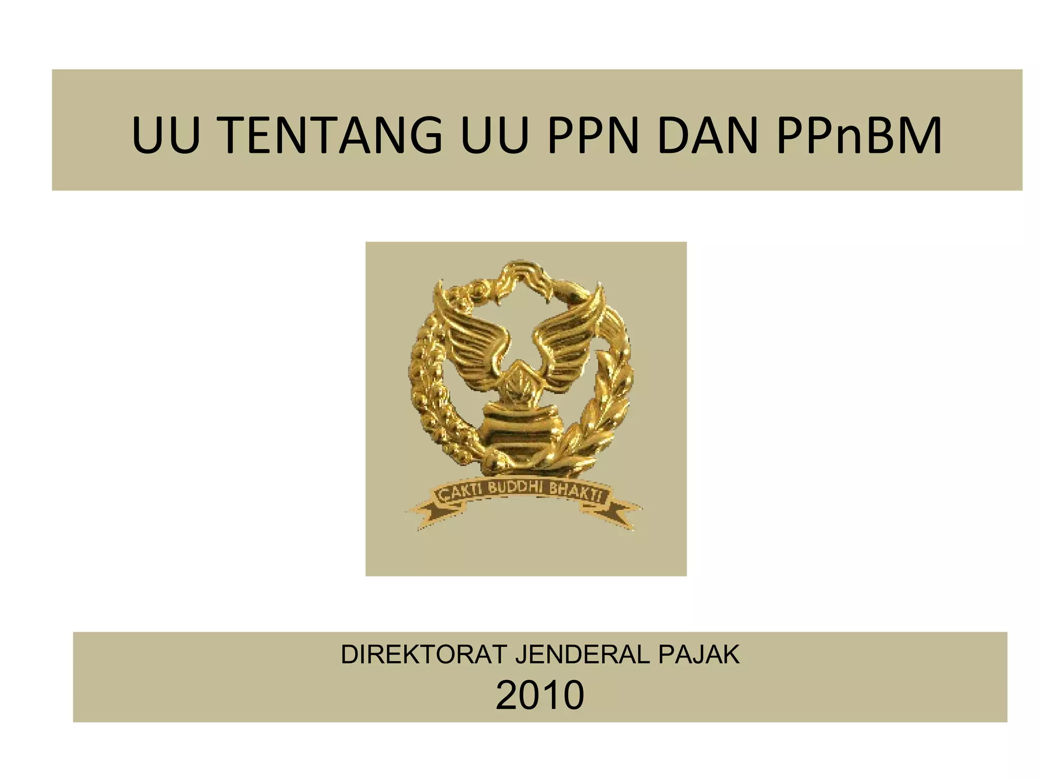 Dokumen ini membahas tentang Undang-Undang Pajak Pertambahan Nilai (PPN) dan Pajak Penjualan atas Barang Mewah (PPnBM) yang berlaku di Indonesia. PPN dikenakan terhadap pengusaha kena pajak berdasarkan aktivitas penyerahan barang dan jasa, dengan pengecualian untuk barang dan jasa tertentu. Dokumen ini juga menjelaskan mekanisme penghitungan PPN, jenis barang dan jasa yang tidak dikenakan pajak, serta kewajiban pengusaha dalam pembukuan dan penerbitan faktur pajak.