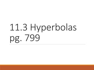 This document discusses hyperbolas and how to sketch them. It defines a hyperbola as the set of points where the difference between the distances to two fixed foci is a constant. It provides the equations of horizontal and vertical hyperbolas with their vertices, asymptotes, and foci. Finally, it outlines the four steps to sketch a hyperbola: 1) sketch the central box, 2) draw the asymptotes, 3) plot the vertices, and 4) sketch each branch approaching the asymptotes.