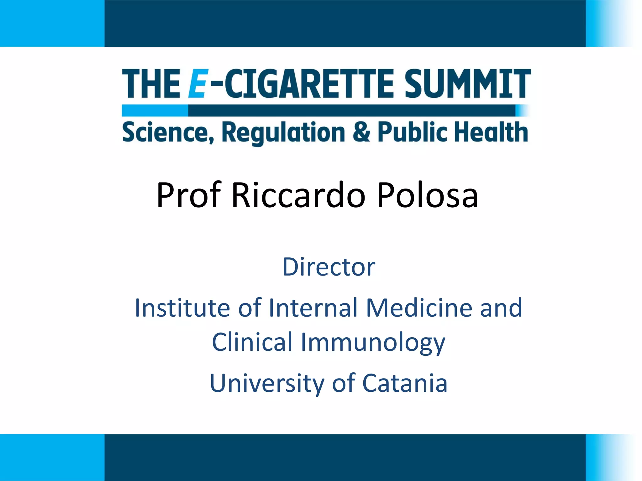 - Professor Riccardo Polosa is the director of the Institute of Internal Medicine and Clinical Immunology at the University of Catania. He has conducted research on e-cigarettes and has received funding from pharmaceutical companies and the e-cigarette industry.