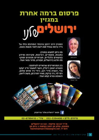 02-6728672 :טלפקס ,02-6725255 :טל .ירושלים תלפיות ,15 חרוצים יד 'רח
