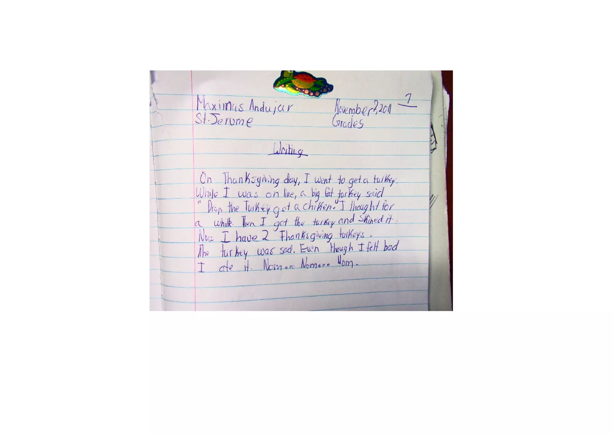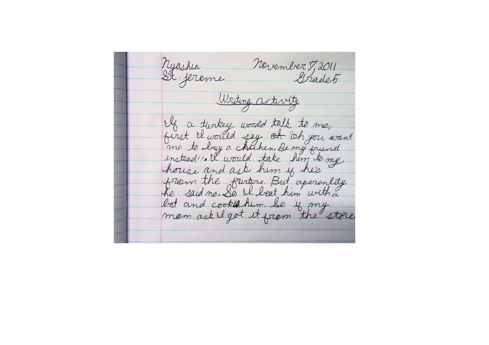 The turkey says to the shopper "Put that down and buy a chicken instead." The shopper is surprised to hear a turkey talk. The turkey explains that it doesn't want to be someone's Thanksgiving dinner and tries to convince the shopper to choose chicken instead so it can live. The shopper is unsure what to do in this strange situation.