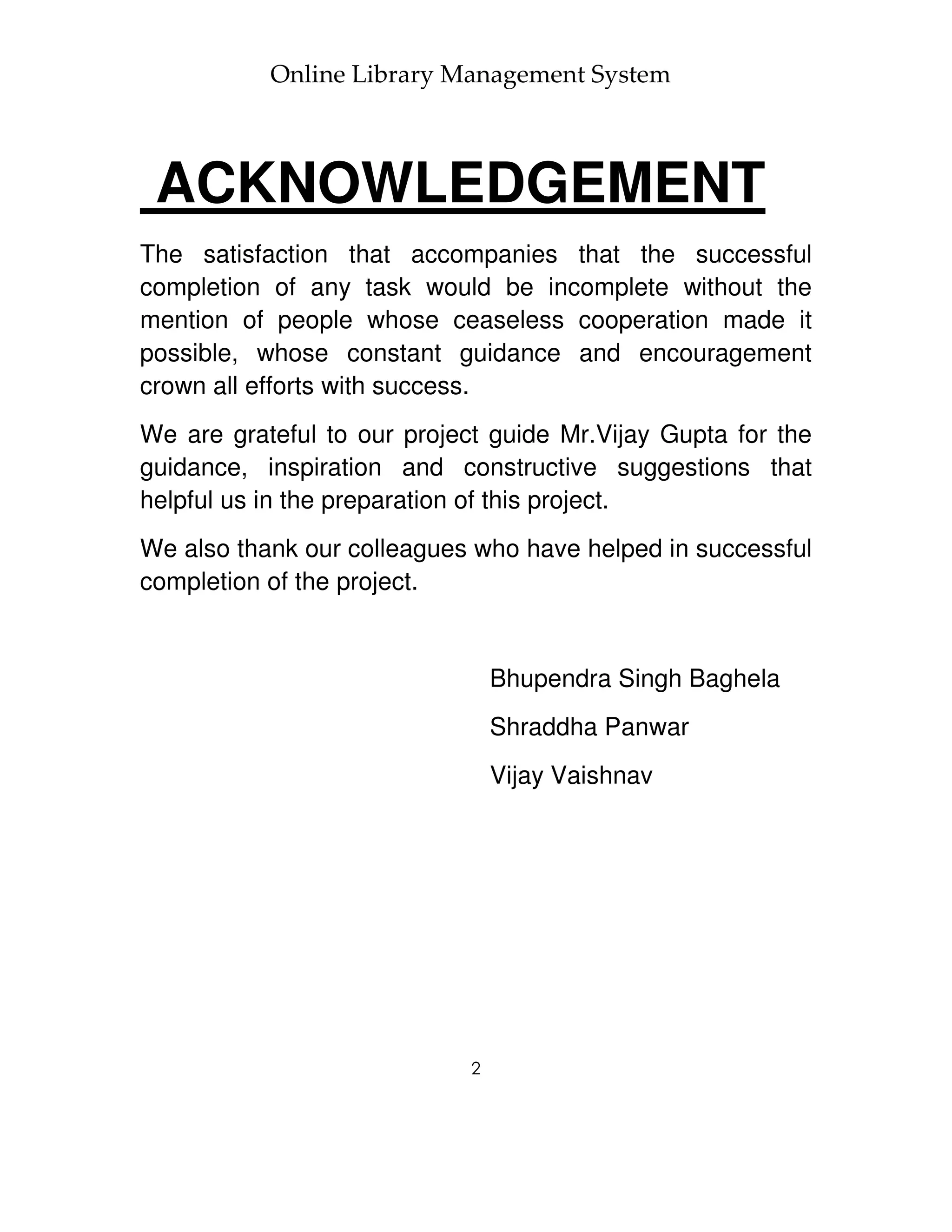 We are grateful to our project guide Mr.Vijay Gupta for the