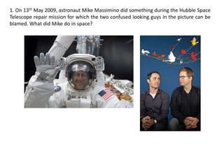 1. Mike Massimino was the first person to tweet from space during a Hubble Space Telescope repair mission in 2009.
