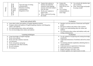 - The curriculum focuses on developing listening, speaking, reading and writing skills. It includes learning about English-speaking cultures and traditions.