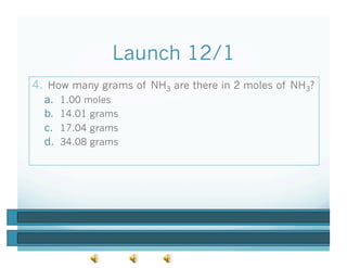 - An exit slip quiz assessed students' understanding of key concepts like Avogadro's number and performing mole-to-particle conversions.