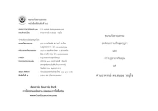 w w. k a n l a y a n a t a m. c o m π ∑ π “ ¿ “ … “ ∏ √ √ ¡ ‡ ≈à ¡ ÒÚ : Ú˜ 207 Ò˜˘. ∫ÿ≠µ“¡¡“∑—π °√“∫‡√’¬π “∏ÿ™π∑ÿ°∑à“π §”∂“¡ ™¡√¡œ ¡’π‚¬∫“¬∑’Ë®–‡º¬·ºà∏√√¡– Ÿà —ß§¡ ¥â«¬°“√ ÀπŸ¡‚ª√·°√¡®‘µµ‘¥≈∫°—∫æàÕ·¡à·≈–‡æ◊Õπ√à«¡ß“π¡“° ’ Ë ®—¥ß“π∫√√¬“¬∏√√¡‡ªìπ∏√√¡∑“π ·≈–º≈‘µ ◊ËÕ∑’Ë à߇ √‘¡°“√ ‡§¬§‘¥®–¶à“µ—«µ“¬¥â«¬ §«√·°â ‰¢«“√–®‘µÕ¬à“߉√‡æ◊ËÕ‡«≈“ æ—≤π“§ÿ≥∏√√¡®√‘¬∏√√¡ ‡™àπ Àπ—ß ◊Õ, ‡∑ª§≈“ ‡ Á∑, ´’¥,’ MP3 À¡¥≈¡À“¬„®®–‰¥â ‰ª Ÿà¿æ¿Ÿ¡‘∑’Ë¥’ ·≈–∫√‘®“§‡ªìπ “∏“√≥°ÿ»≈‰ª¬—ß ∂“π∑’µ“ß Ê ‡ªìπ®”π«π¡“° Ë à Õ¬“°„ÀâÕ“®“√¬å™à«¬Õ∏‘∫“¬‡√◊ËÕß —¡ª√“¬¿æ ∑à“π “¡“√∂¡’ à«π√à«¡‡ªìπ ¡“™‘°™¡√¡‰¥â ‰¡à«à“®– ÀπŸ ‡ §¬∑”ß“π — ß °— ¥ °√–∑√«ß‡°…µ√·≈– À°√≥å ‡ªìπ‡æ»„¥ «—¬„¥ ‰¡à®”°—¥§«“¡√Ÿâ ‡™◊ÈÕ™“µ‘·≈–»“ π“¥â«¬°“√ Õ¬“°®–°≈—∫‡¢â“‰ª∑”ß“πÕ’°‡æ◊ËÕ∑¥·∑πæ√–§ÿ≥·ºàπ¥‘π®– ≈–·√ß°“¬ ·√ß„® ·≈–√à«¡∫√‘®“§‡æ◊ËÕ‡ªìπ‡®â“¿“æ „π°“√ ™à«¬„Àâ ‰ª Ÿà¿æ¿Ÿ¡‘∑’Ë¥’‰¥â ‰À¡ ®—¥ß“π∏√√¡∫√√¬“¬ ‡ªìπ‡®â“¿“æ„π°“√∫√‘®“§Àπ—ß ◊Õ‰ª¬—ß ÀâÕß ¡ÿ¥ À√◊Õ«—¥ µà“ß Ê ‡ªìπµâ𠵓¡°”≈—ß»√—∑∏“¢Õß∑à“π À√◊Õ §”µÕ∫ ‡¢â“√à«¡°‘®°√√¡µà“ß Ê ¢Õß™¡√¡ ‚¥¬‰¡à‡ ’¬§à“„™â®à“¬„¥ Ê ®‘µ¡’∏√√¡™“µ‘√ŸâÕ“√¡≥å ¡’§«“¡ “¡“√∂∑’Ë®–√Ÿâ §‘¥ π÷° ∑à“πºŸâ¡’®‘µ»√—∑∏“µâÕß°“√Àπ—ß ◊Õ·≈– ◊ËÕ∏√√¡∑“π «à“®‘µ∑’Ë√–≈÷°√Ÿâ „π ‘Ëß∑’ˇªìπÕ°ÿ»≈ “¡“√∂ª√—∫ª√ÿß·°â ‰¢„Àâ¡“ ¢Õß™¡√¡°—≈¬“≥∏√√¡ °√ÿ≥“µ‘¥µàÕ √Ÿâ §‘ ¥ π÷ ° ·µà „ π ‘Ë ß ∑’Ë ‡ ªì π °ÿ » ≈‰¥â ¥â « ¬°“√æ— ≤ π“®‘ µ „Àâ ¡’ µ‘ —¡ª™—≠≠– ∑—Èßπ’ȵâÕßπ”µ—«‡Õ߇¢â“Ωñ°ªØ‘∫—µ‘∏√√¡ ·≈– ™¡√¡°—≈¬“≥∏√√¡ À“°‡¡◊ËÕ„¥®‘µ‡¢â“∂÷ß∏√√¡¢Õßæ√–æÿ∑∏–‰¥â·≈â« µ‘ —¡ª™—≠≠– Ò ∂.ª√–‚§π™—¬ µ.ª“°πÈ” Õ.‡¡◊Õß ®. ¡ÿ∑√ª√“°“√ Ÿß ÿ¥®–‡°‘¥¢÷Èπ ‘Ëß∑’˧‘¥‰¡à¥’®–¡’ µ‘‡ªìπµ—«√–≈÷°‰¥â∑—π·≈–¡’ ÒÚ˜ ‚∑√. Ú-˜Ú-˜ÛıÛ ·≈– Ú-˜Ú-˘ˆÚÙ —¡ª™—≠≠– (µ—«ªí≠≠“) ™à«¬°”®—¥§«“¡§‘¥∑’Ë ‰¡à¥„ÀâÀ¡¥‰ª §ß ’ ‚∑√ “√. Ú-˜Ú-˜ÛıÛ ·≈– Ú-˜Ú-¯˜ˆÛ À√◊Õ ‡À≈◊Õ‰«â·µà§«“¡§‘¥∑’Ë¥’ —Ëߪ“°„ÀâæŸ¥ —ËßÕ«—¬«–¢Õß√à“ß°“¬„Àâ ∑”·µà ‘Ë ß ¥’ ß “¡ ∑’Ë · ¥ß„Àâ ‡ ÀÁ 𠇪ì π æƒµ‘ ° √√¡¥’ ∑’Ë § π∑—Ë « ‰ª ™¡√¡°—≈¬“≥∏√√¡ “¡“√∂ —¡º— ‰¥â ¯˘/ˆ-˜ ´Õ¬»÷°…“«‘∑¬“ ∂. “∏√‡Àπ◊Õ ·¢«ß ’≈¡ Õπ÷Ëß°“√∑¥·∑π§ÿ≥¢Õß·ºàπ¥‘π ∫ÿ§§≈ “¡“√∂∑”‰¥â ‡¢µ∫“ß√—° °∑¡. Òı ¥â«¬°“√ª√–惵‘µπ‡ªìπºŸâ „Àâ ‘Ëߥ’ß“¡·°à —ß§¡∫â“π‡¡◊Õß ‚¥¬ ‚∑√. Ú-ˆÛı-Û˘˘¯ ‰¡à®”‡ªìπµâÕß°≈—∫‡¢â“‰ª∑”ß“π„πÀπ૬ߓπ∑’Ë∫Õ°‡≈à“‰ª ‚∑√ “√. Ú-Úˆˆ-Û¯˜