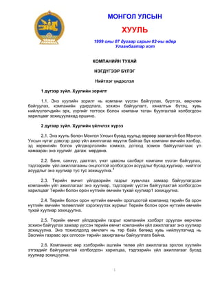 өөрчилнө. Энэ хууль хүчин төгөлдөр болсон өдрөөс компанийн дүрмийг энэ хуульд