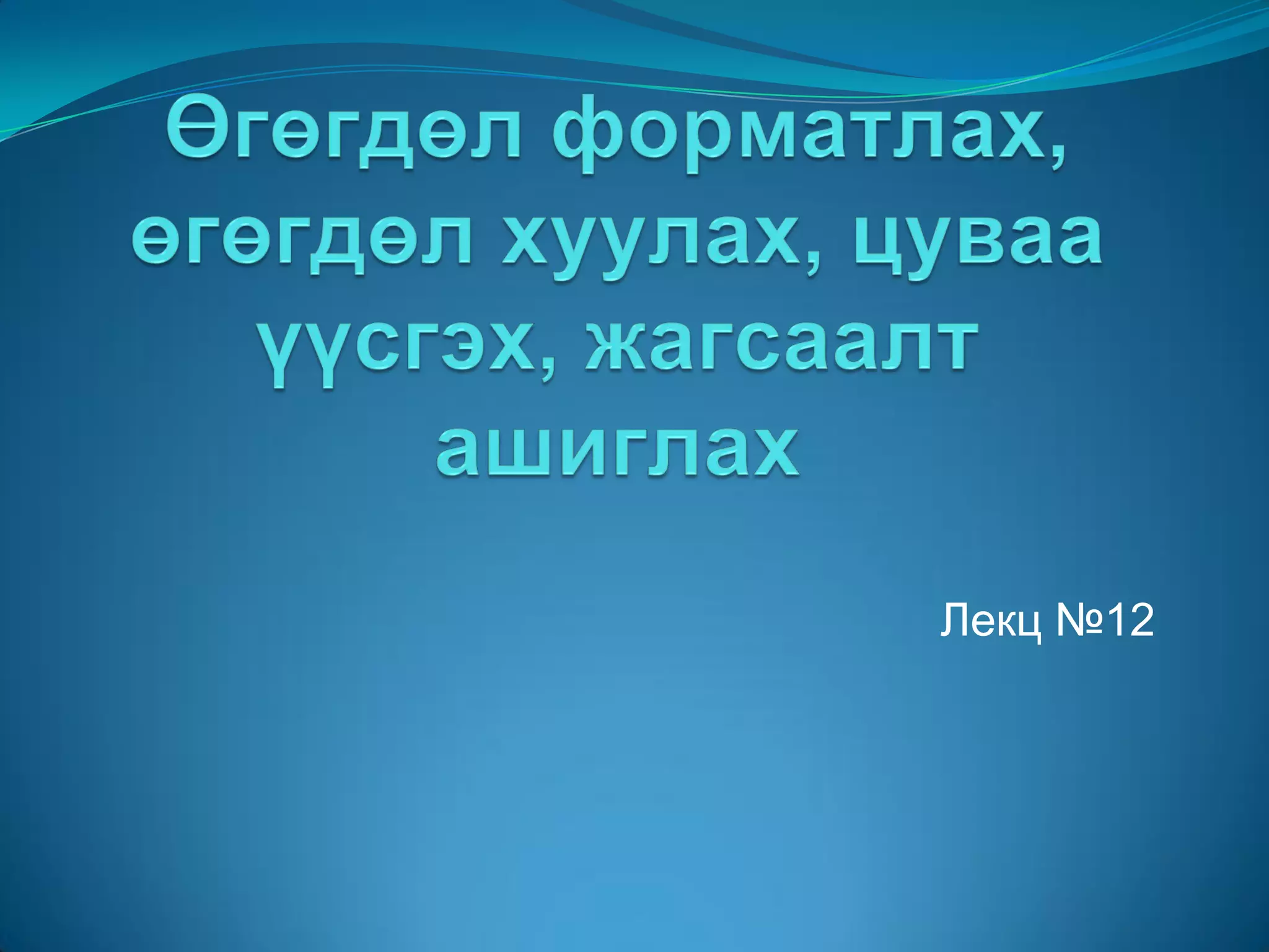 Excel ïðîãðàìä í¿äíèé òóñãàé ôîðìàòûã