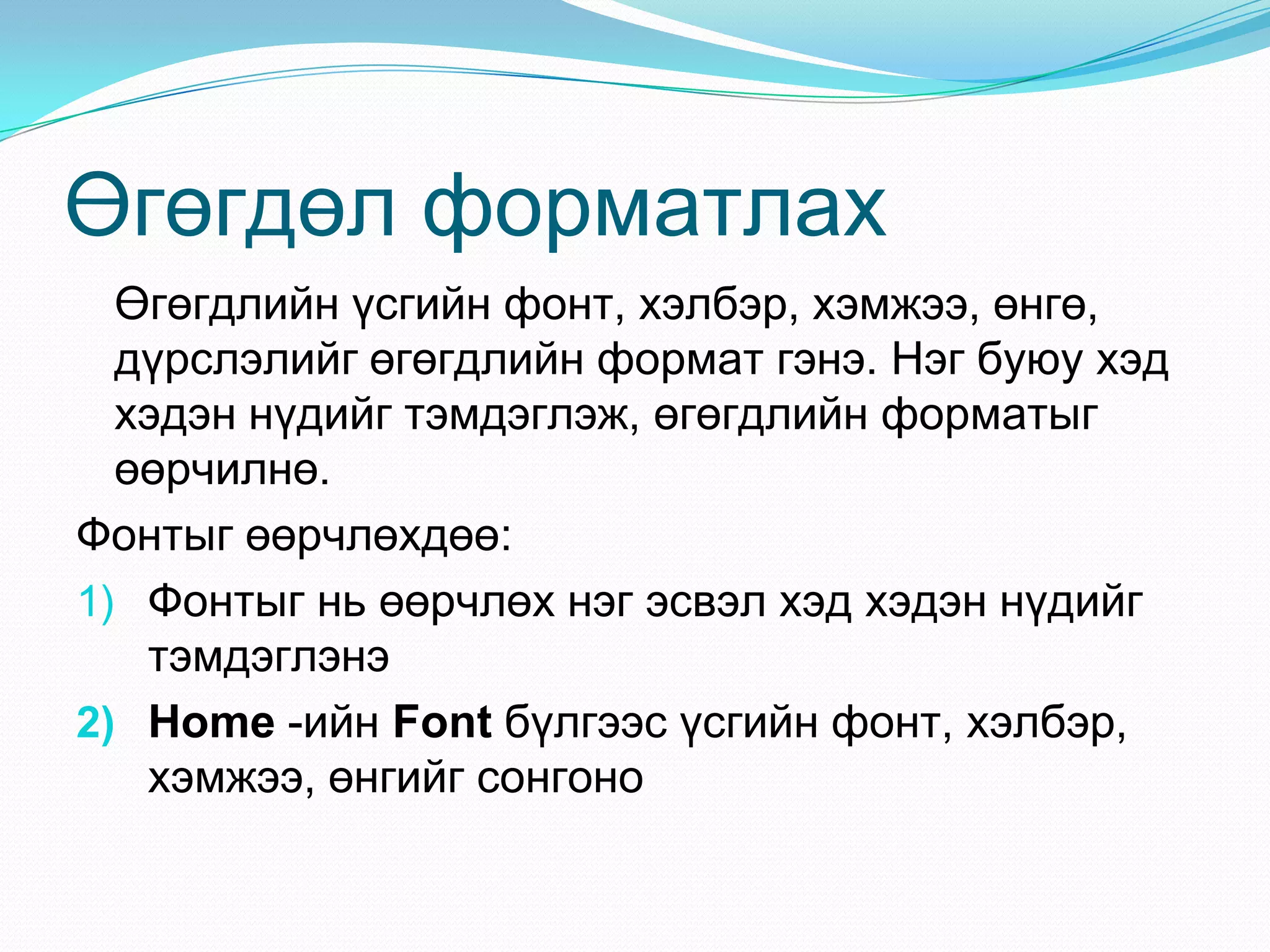 2) Home -èéí Font á¿ëãýýñ ¿ñãèéí ôîíò, õýëáýð,