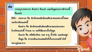 ตัวอย่าง พารามิเตอร์ ตัวแปล ข้อมูล และค่าสถิติของการสารวจนี้