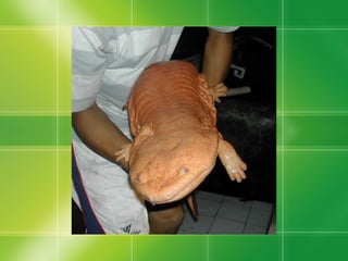 Amphibians such as frogs, toads, and salamanders spend their early life in water and their adult life on land. They have adaptations like camouflage, legs, and lungs that allow them to live on both land and water. However, amphibians are sensitive to environmental changes and facing threats due to habitat loss, pollution, and other factors.
