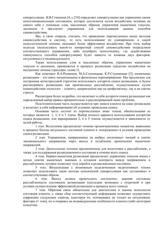 Документ рассматривает методы построения антистрессовой стратегии личности, освещая влияние стресса на психосоматическое здоровье и необходимость саморегуляции. Также представлен алгоритм сеанса релаксации, включающий этапы для снятия эмоционального напряжения и управления мышечным тонусом. В заключение подчеркивается важность применения психологических техник для снижения воздействия стрессоров на психоэмоциональное благополучие.
