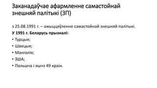 з 25.08.1991 г. – ажыццяўленне самастойнай знешняй палітыкі.