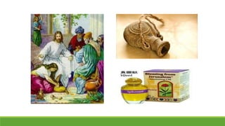 文档讨论了约翰福音第十二章的内容,重点是马利亚用香膏抹耶稣的故事,以及耶稣骑驴驹进入耶路撒冷的情景。文中涉及到门徒对香膏使用的误解,以及耶稣对马利亚的行为的赞许,强调爱与奉献的真正意义。通过这些故事,探讨了与耶稣关系的重要性及个人献身的价值。