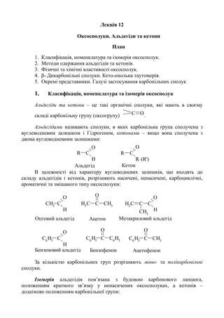 1. Класифікація, номенклатура та ізомерія оксосполук.