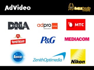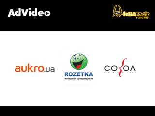 Документ обсуждает эффективность видео-рекламы, подчеркивая ее преимущества по сравнению с баннерной рекламой и телевидением. Упоминаются такие проблемы, как создание креатива и высокий порог входа для e-commerce, а также необходимость оптимизации бюджета. Видео-реклама демонстрирует высокий уровень отдачи и важность построения бренда.