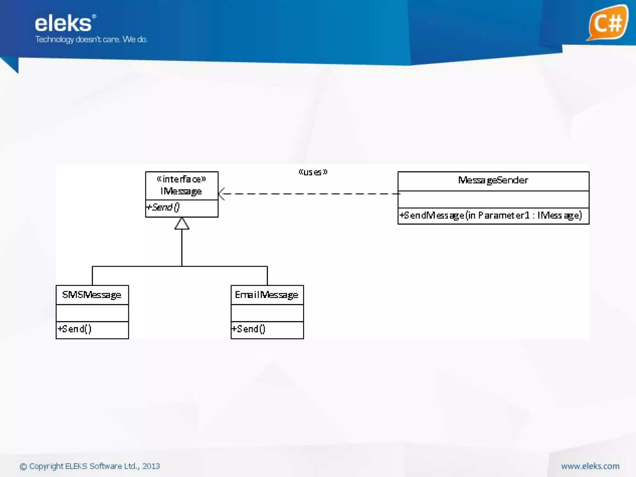 //обидва класи (SMSMessage і EmailMessage) реалізують інтерфейс IMessage,