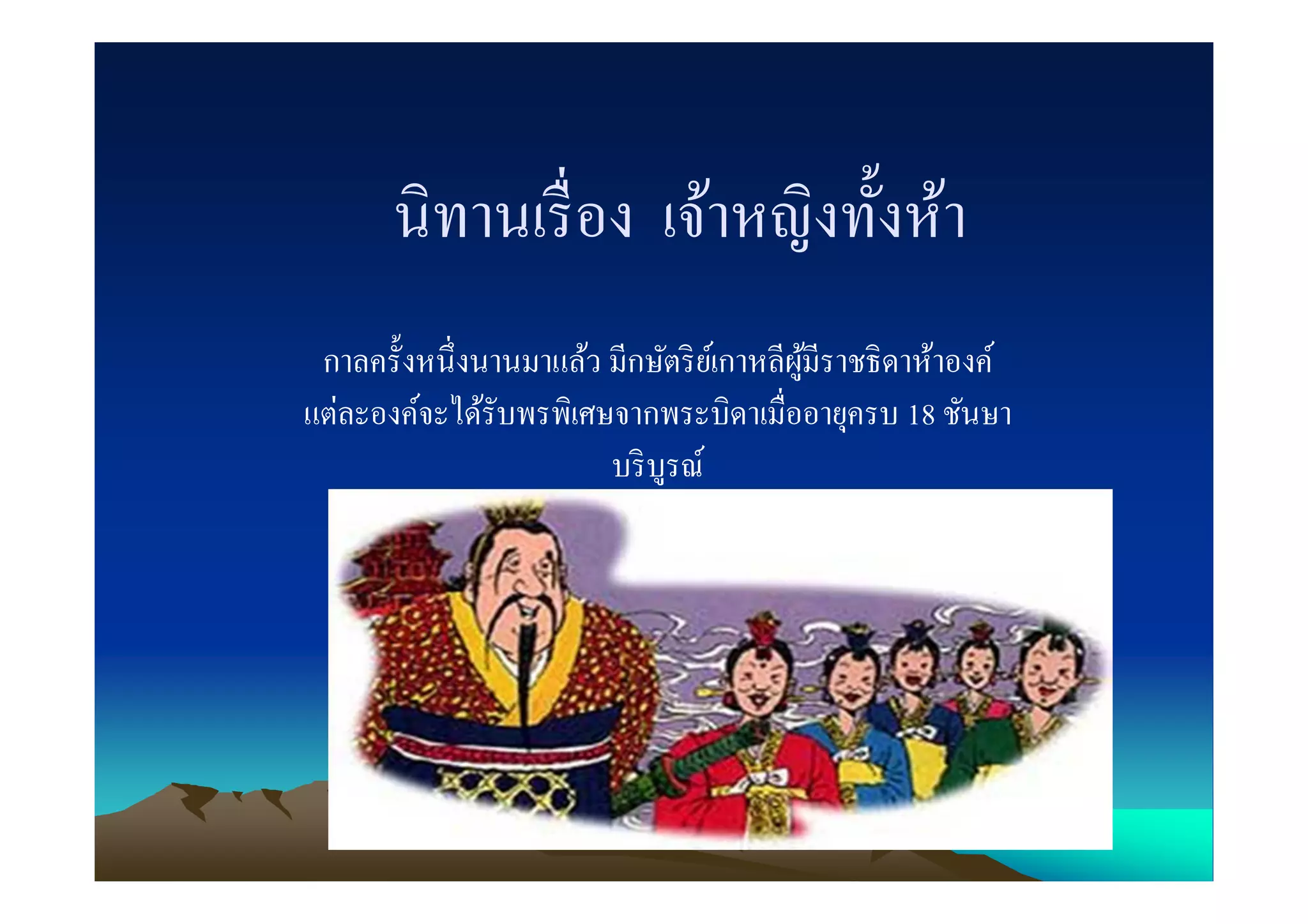 กาลครังหนึงนานมาแล้ว มีกษัตริ ยเ์ กาหลีผมีราชธิ ดาห้าองค์