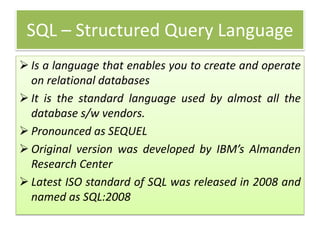 • SELECT DEPT,AVG(SAL) FROM EMP GROUP BY DEPT HAVING