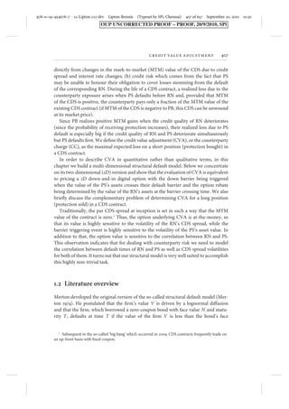 This document discusses credit value adjustment (CVA) in the context of counterparty risk for credit default swaps (CDS), emphasizing the importance of effective risk management following the 2008 financial crisis. It presents a multi-dimensional structural default model which quantitatively estimates counterparty credit risk, illustrating how to integrate correlated dynamics of credit spreads and firm values. The chapter outlines innovative numerical methods for pricing CDS and estimating CVA while addressing limitations in existing approaches, enabling better calibration to market observed spreads.