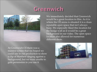 The group scouted several London locations to film various scenes for their music video. They liked Greenwich for its open space near the O2 arena. At Canary Wharf, they wanted to film in Cabot Square for its fountain and bridges, which would work for a romantic scene. Embankment was considered for its views of Big Ben and the London Eye at night. Shots outside Harrods were planned to represent an "expensive things" lyric. Additional scenes would be filmed at a house, school, and cemetery.