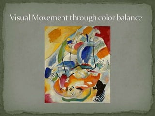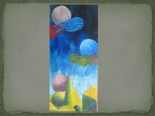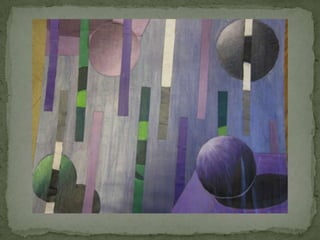 The document discusses several modern abstract artists including Wassily Kandinsky, Piet Mondrian, and Paul Klee. It provides biographical information on each artist and summarizes how their styles evolved to incorporate abstraction. Kandinsky's paintings became more colorful and loosely organized after being exposed to Fauvism in Paris. Around 1913, he began creating the first totally abstract works with no reference to the physical world. Mondrian is known for his simplified compositions using primary colors, black, white, and gray in straight lines and right angles embodying a spiritual belief in harmony. Klee was influenced by music and created works known for their imaginative dream images and wit belonging to no specific art movement.