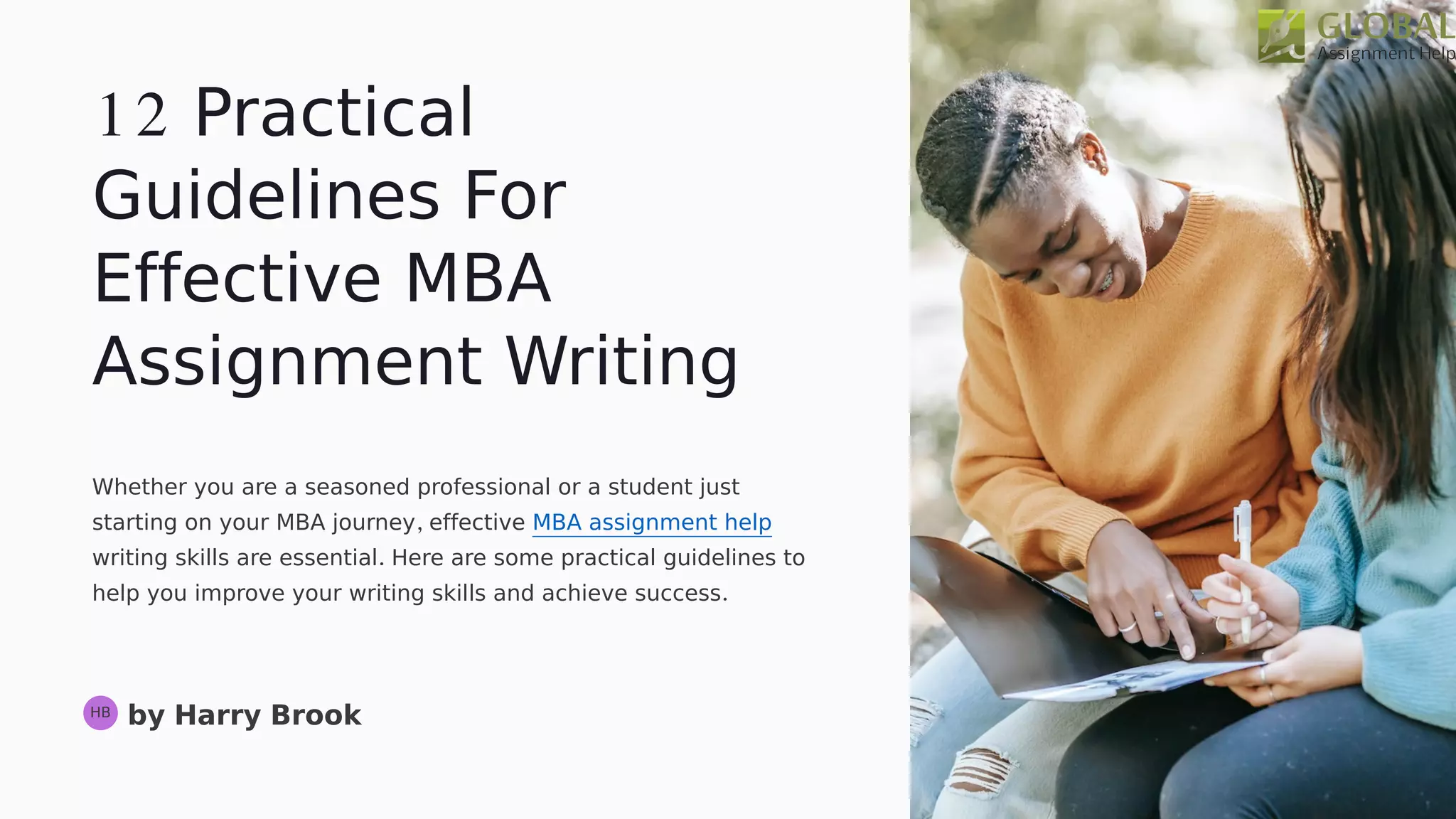 The document provides 12 practical guidelines for effective MBA assignment writing, emphasizing the importance of understanding assignment requirements, conducting thorough research, and maintaining originality. It covers structuring the assignment, using clear language, and following proper citation formats, specifically APA. By adhering to these guidelines, students can enhance their writing skills and succeed academically.
