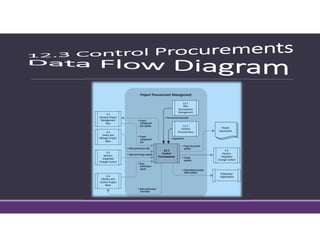 The document discusses project procurement management. It provides definitions of key terms like contracts, procurement, and contract types. It also outlines the processes involved in procurement management according to the Project Management Body of Knowledge, including planning procurements, conducting procurements, controlling procurements, and closing procurements. The inputs, tools and techniques, and outputs of procurement planning are described. Different types of contracts like fixed-price, cost-reimbursable, and time and materials are also defined.