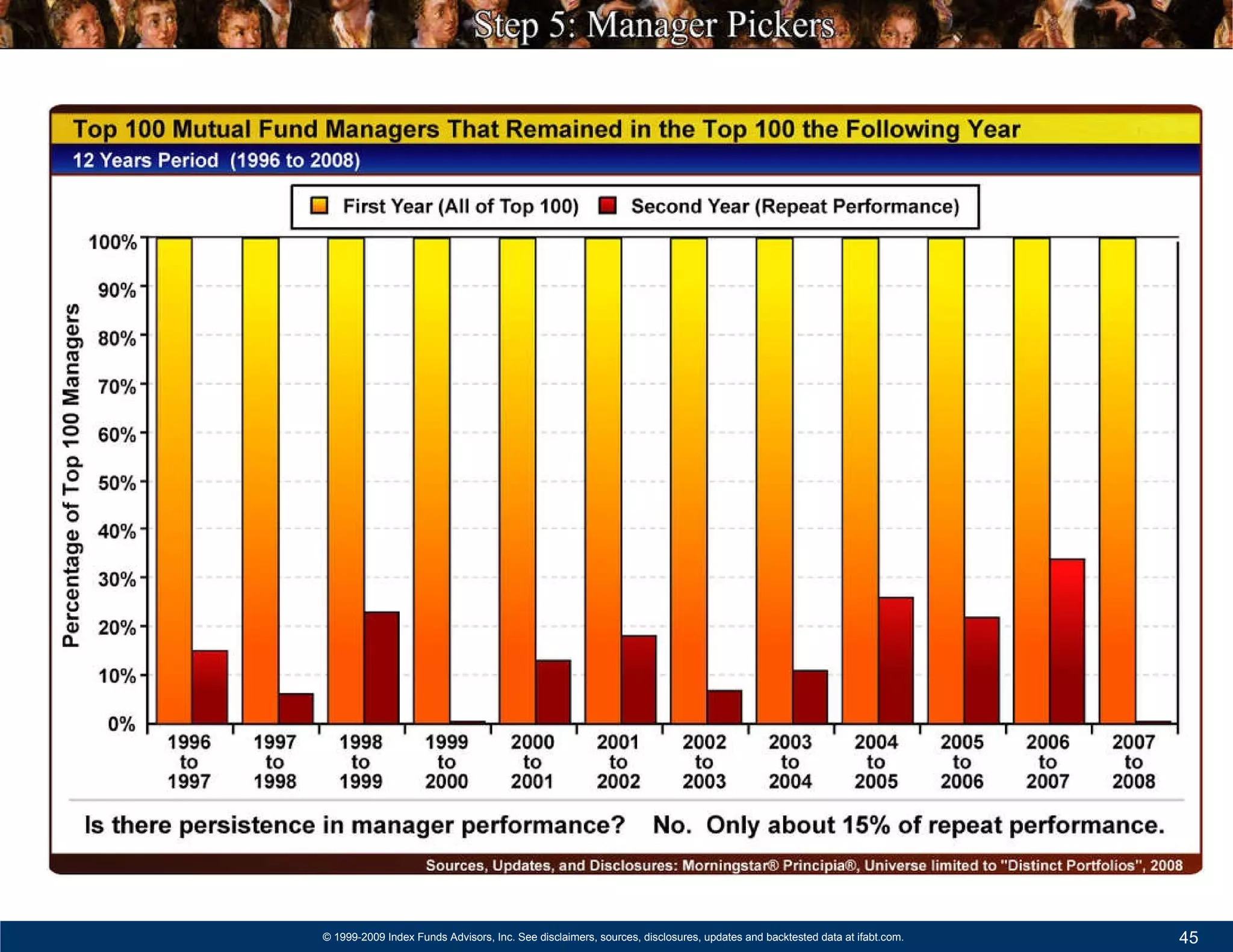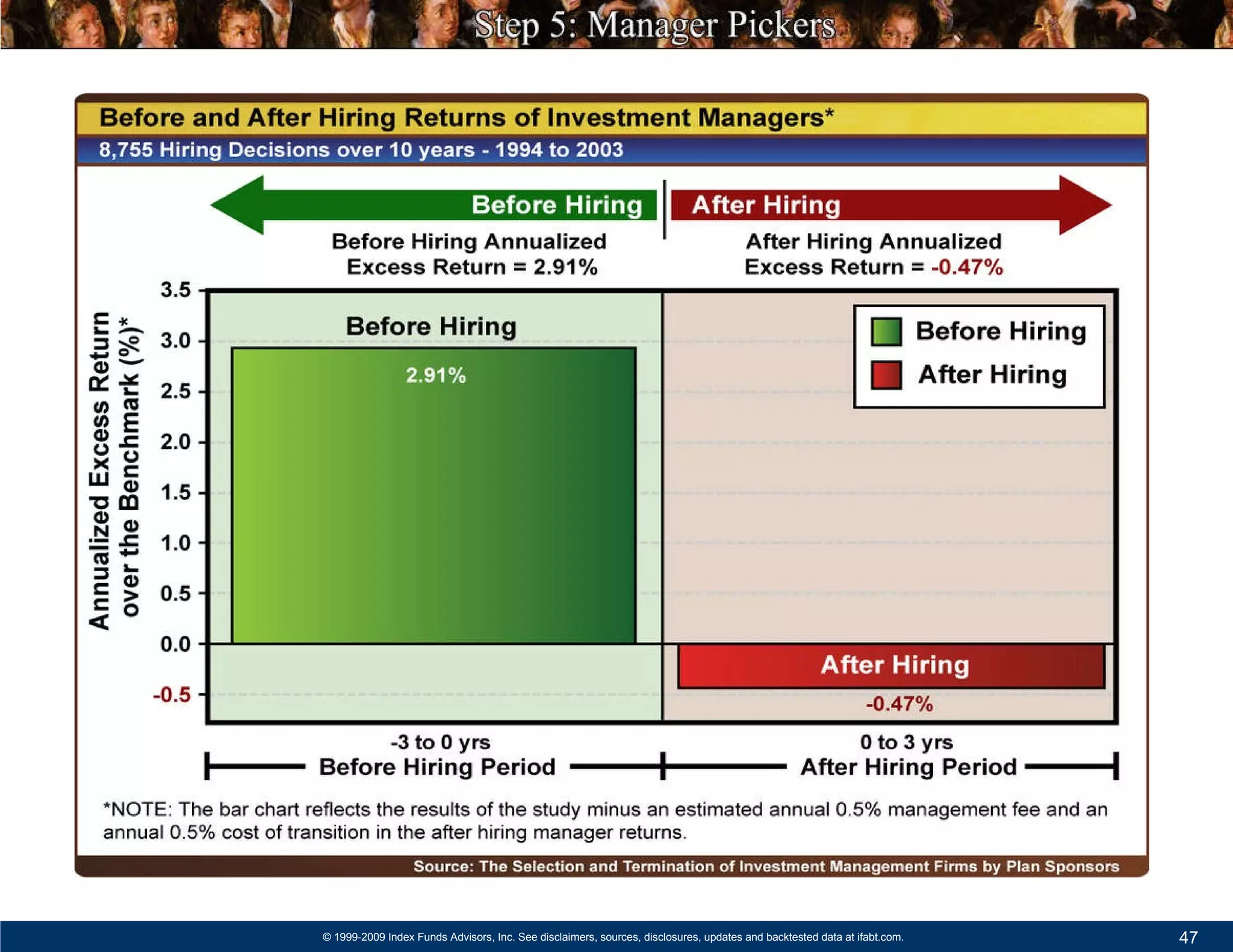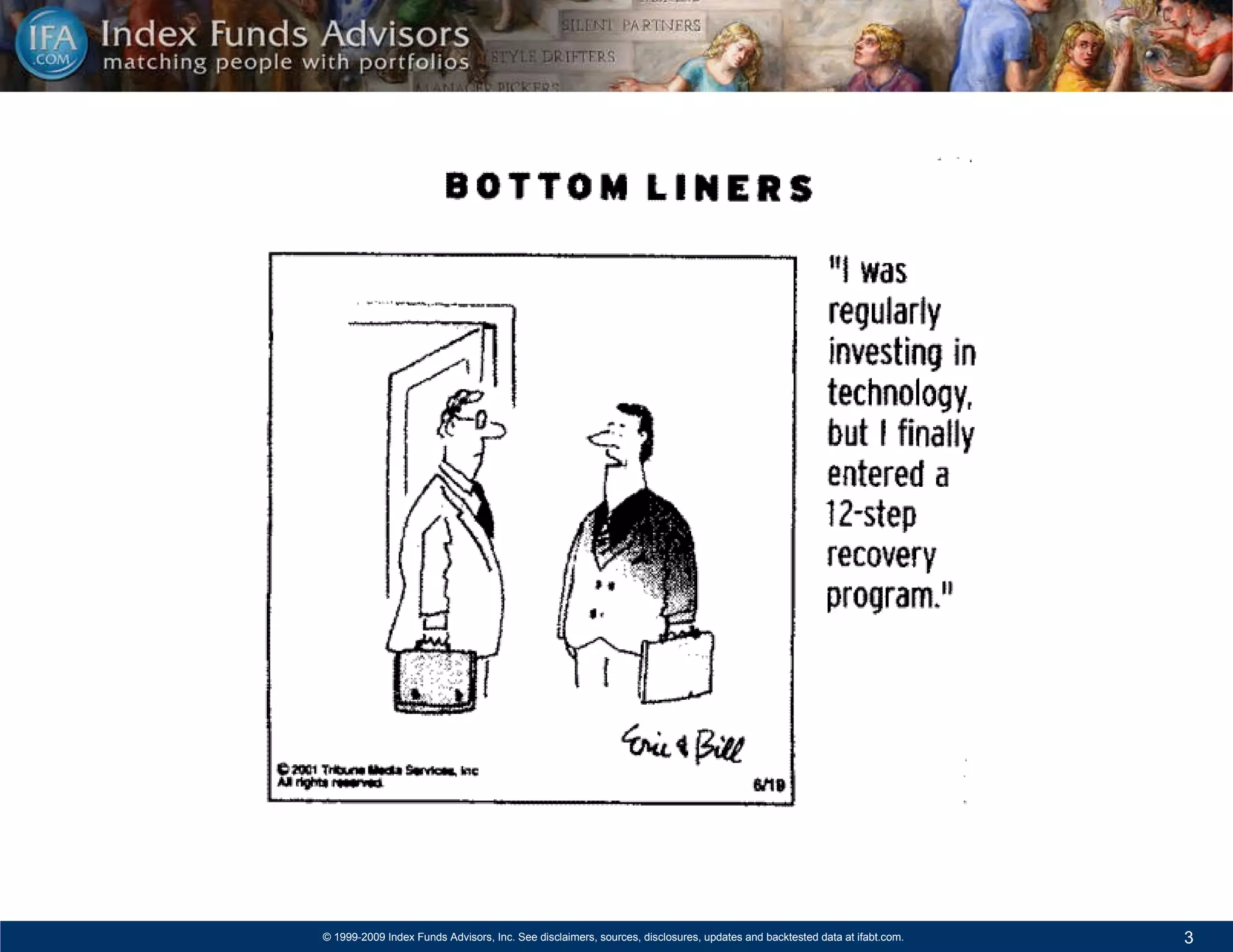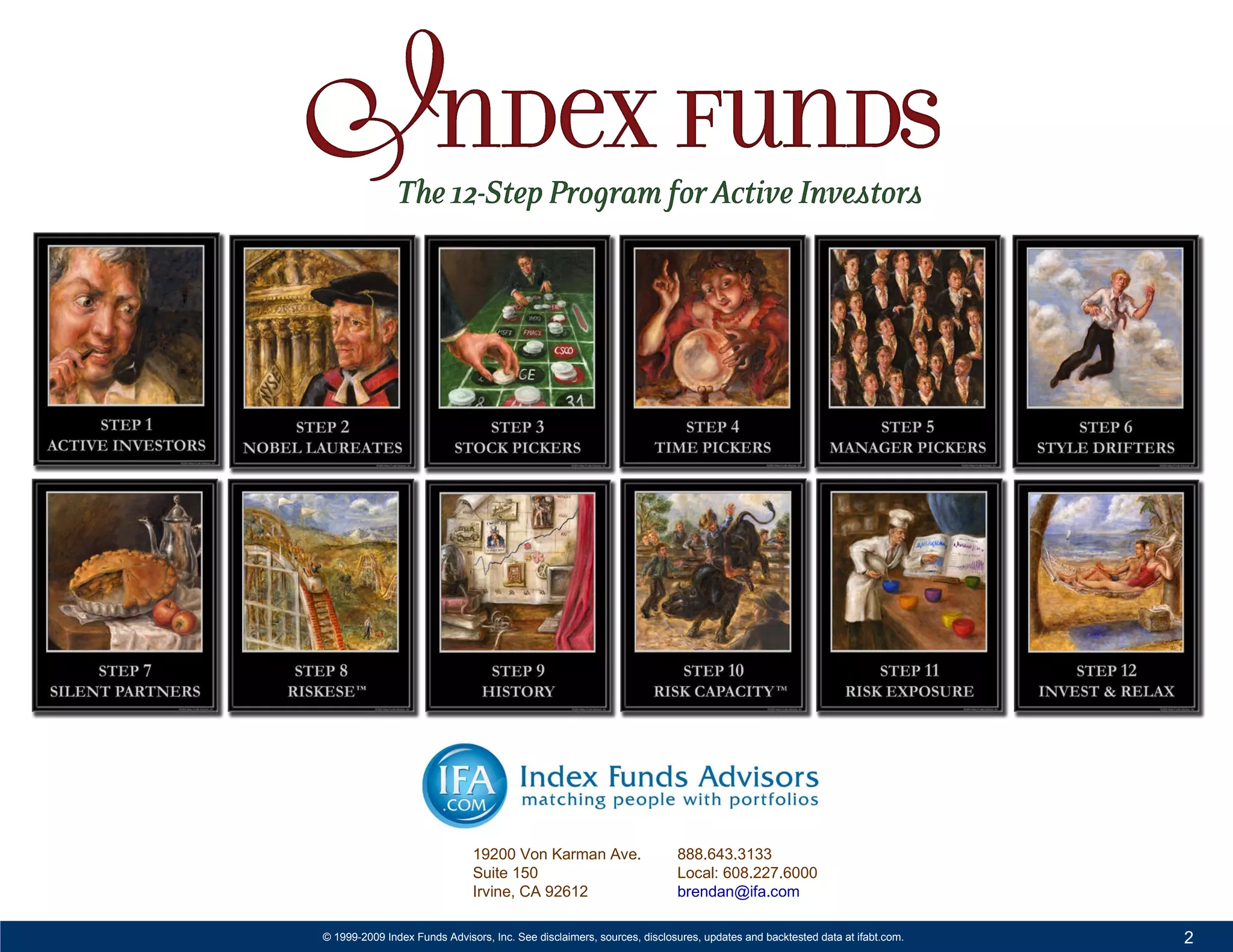 The document provides an abbreviated disclosure for backtested performance information on simulated index strategies and index portfolios from Index Funds Advisors, Inc. It discusses that IFA was incorporated in 1999 and placed its first client investments in 2000, and the performance information presented is based on backtested data from 1928 to the period ending date using an annual rebalancing strategy. It notes that prior to 1999, IFA did not manage client assets and the index portfolios were not available. The disclosure also mentions that index portfolios provide global diversification across approximately 15,000 companies to reduce risk.