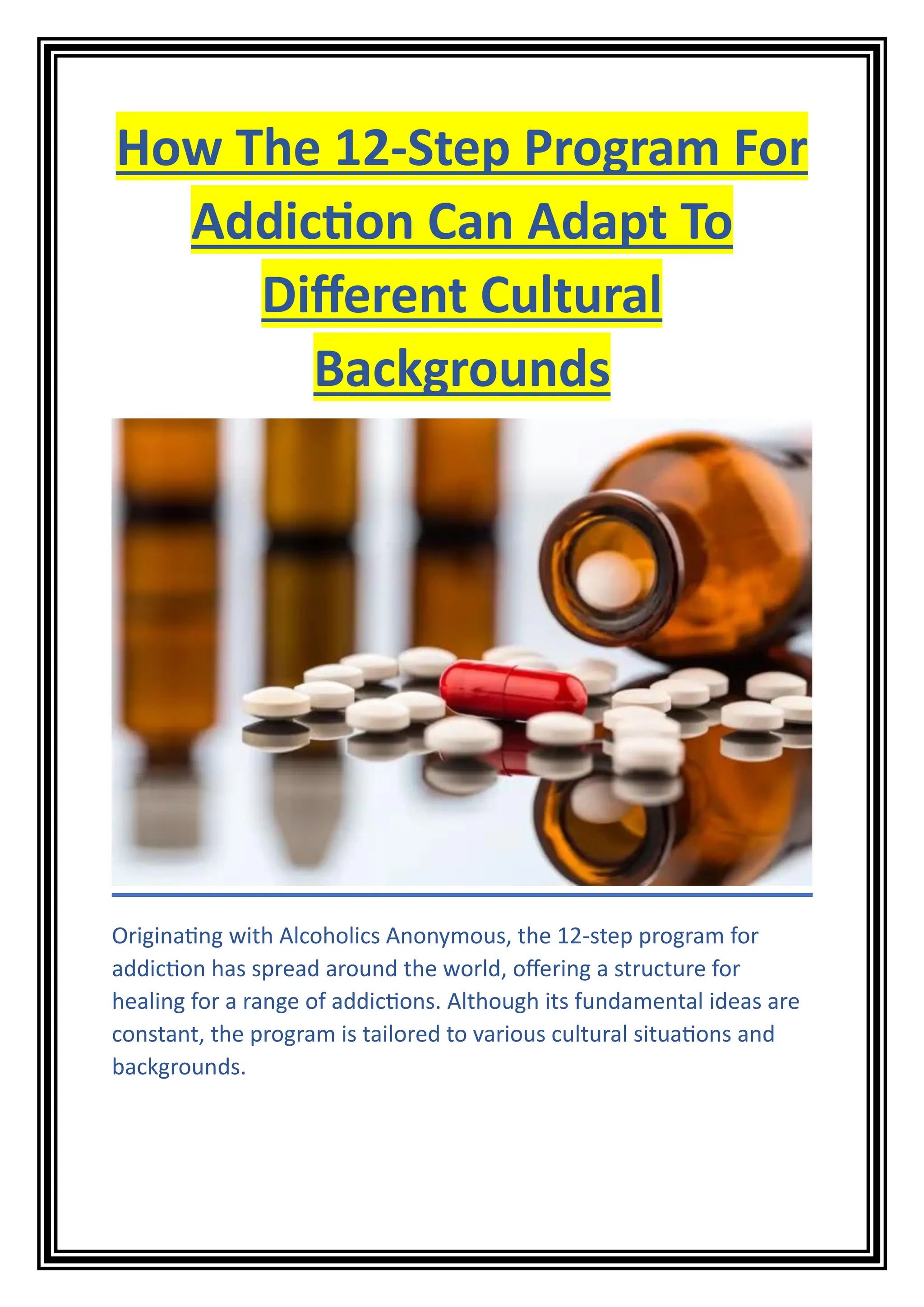 The 12-step program for addiction has been successfully adapted to various cultural backgrounds while maintaining its core values of spirituality, peer support, and personal accountability. Modifications include addressing language barriers, accommodating different meeting formats, and enhancing cultural sensitivity. Despite existing challenges, such as stigma and misinterpretation, the program's adaptability continues to provide hope and support to a diverse range of individuals seeking recovery.