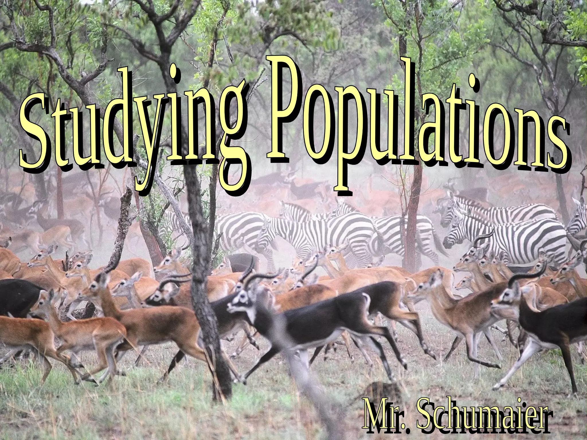 This document discusses key concepts related to studying populations. It defines population density as the number of individuals in an area. It explains that ecologists estimate population sizes through direct observation like counting, indirect observation of signs, or sampling a small area and extrapolating. An estimate is an approximation based on reasonable assumptions. Sampling is used when counting every member is not possible. Populations change size due to new members entering or leaving through birth, death, immigration, and emigration. Birth rate is the number of births and death rate is the number of deaths over a period of time. Limiting factors prevent population growth, such as food, space, and weather conditions. Carrying capacity is the largest population an environment can support.